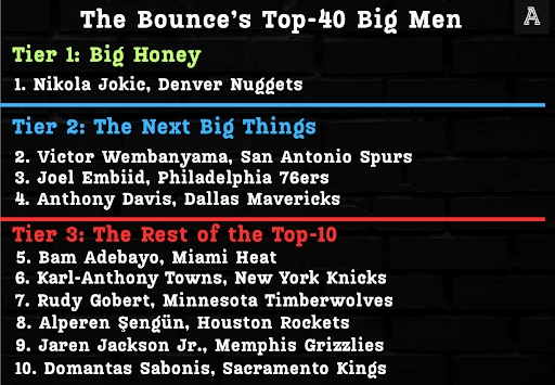 08月16日讯 知名美媒《The Athletic》记者Zach Harper列出了NBA排名前40的大个子球员。其中约基奇独一档高居榜首,文班第二,恩比德第三,浓眉第四,三人组成第二档。另外杨瀚森排在第25,艾顿排在第30,第40名是亚历克斯-萨尔。